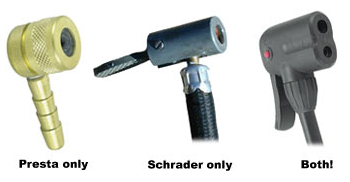 - “SUPER FIT” CLEVER VALVE: does not leak, automatically grips both Schrader and Presta valves