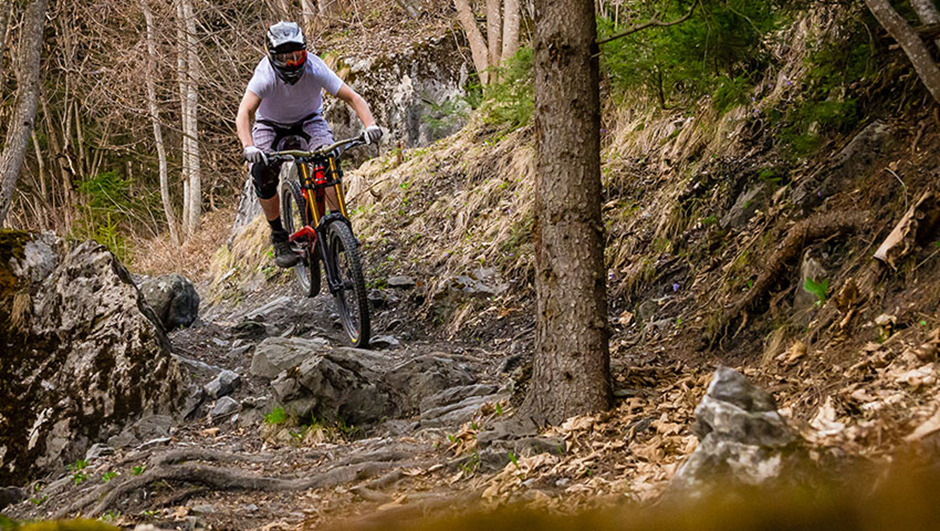 There’s a misconception, especially when starting out, that you need to brake for every corner. As simple as it sounds, mentally it’s quite hard to overcome. A good exercise is to find a trail you know and consciously brake on a very simple corner, then let off the brakes completely and let the bike roll through. Repeating this, take the corner the next time with less brakes until you can take it with no brakes at all.