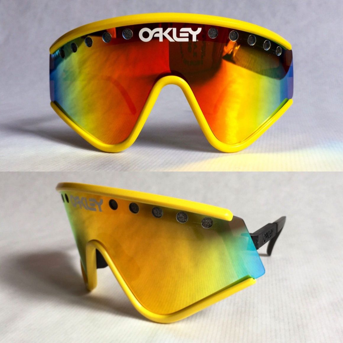 I’m fairly sure, and I’ve asked a few “old” friends about them, and we think they were called Oakley Factory Pilots, they were based on the O frame, but in light plastic and had replaceable lenses. This happened in 1984 and Oakley have not looked back since.